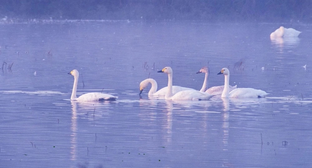 Zhong Xixiu, the owner of the family farm, which is located in Wuxue city, Hubei, said that wild swans have been spotted in her ecological rice fields during the winter seasons for 12 consecutive years.