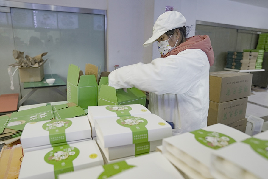A worker packs yuanxiao (glutinous rice balls stuffed with fillings of various flavors), a delicacy eaten during China’s Lantern Festival, at a time-honored snack shop renowned for making traditional food in Dongcheng District, Beijing, Feb. 1, 2023.. (People’s Daily Online/Peng Yukai)