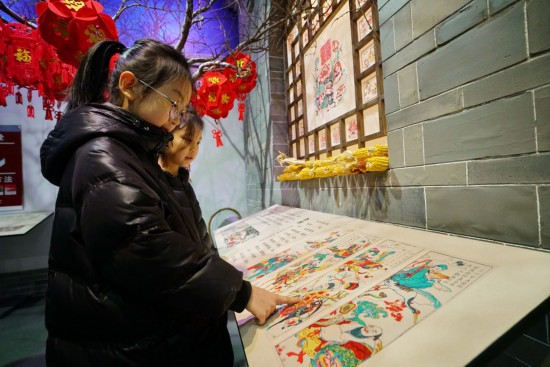 People visit the Wuqiang woodblock New Year painting museum in Wuqiang County, north China's Hebei Province, Feb. 3, 2023. (Xinhua/Mu Yu)