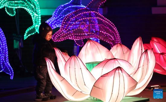 A child views lanterns at Liaohe ancient street in Yingkou, northeast China's Liaoning Province, Feb. 3, 2023. The Liaohe ancient street has been decorated with various lanterns to greet the Lantern Festival, the 15th day of the first month of the Chinese lunar calendar, which falls on Feb. 5 this year. (Xinhua/Yao Jianfeng)