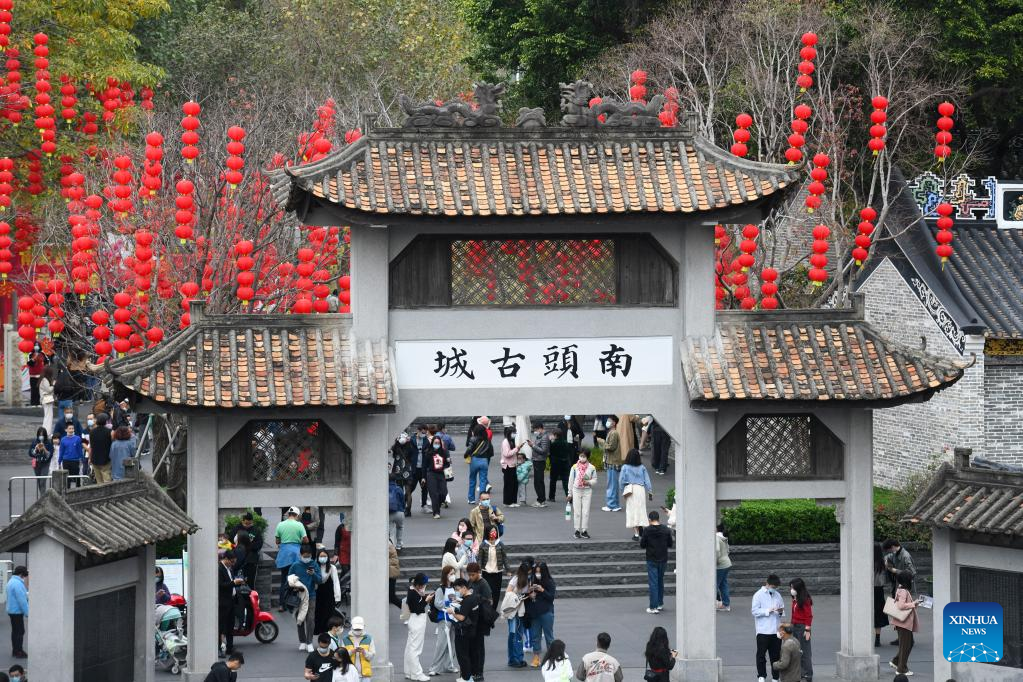 Tourists visit Nantou ancient town in Shenzhen, south China's Guangdong Province, on Feb. 4, 2023. A fair was held in Nantou ancient town to celebrate the upcoming Lantern Festival, which falls on Feb. 5 this year. (Xinhua/Liang Xu)