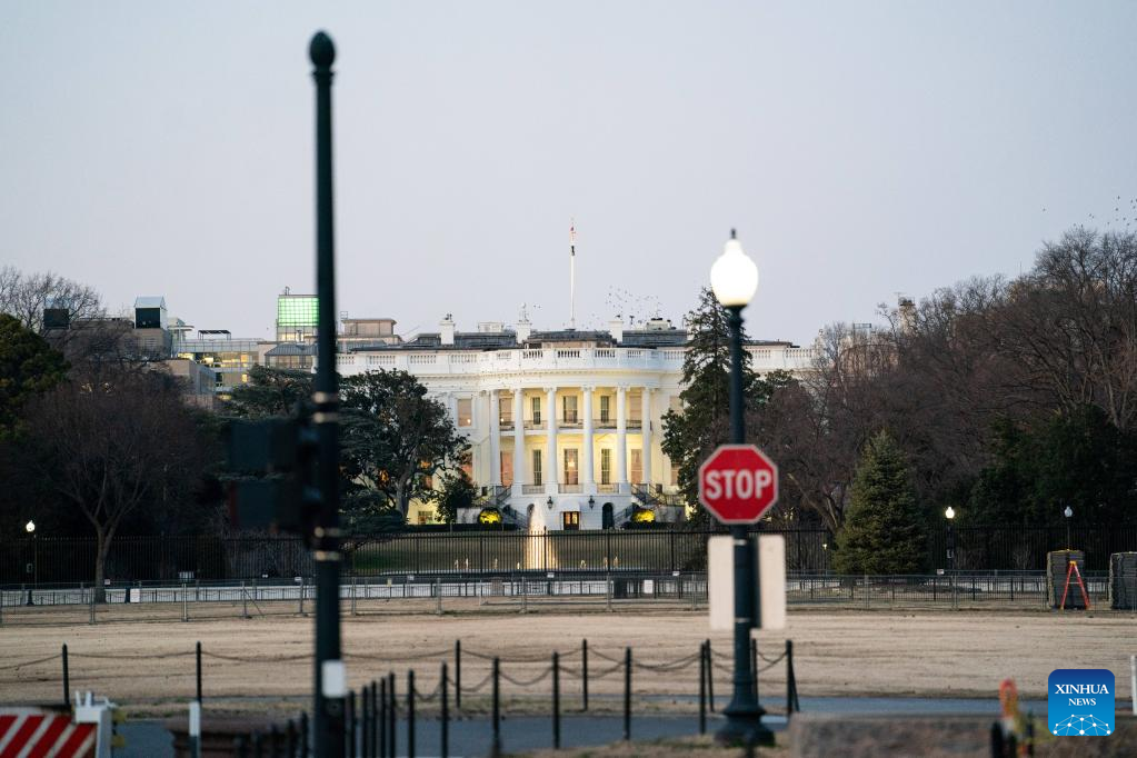 This photo taken on Feb. 3, 2023 shows the White House in Washington, D.C., the United States. The administration of U.S. President Joe Biden announced Friday an additional round of security assistance for Ukraine with a total value of 2.2 billion U.S. dollars. (Xinhua/Liu Jie)