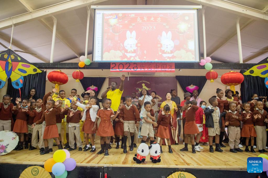 A Chinese Lunar New Year celebration event is held by the Confucius Institute of the University of Botswana at an international primary school in Gaborone, Botswana, Feb. 3, 2023. (Photo by Tshekiso Tebalo/Xinhua)