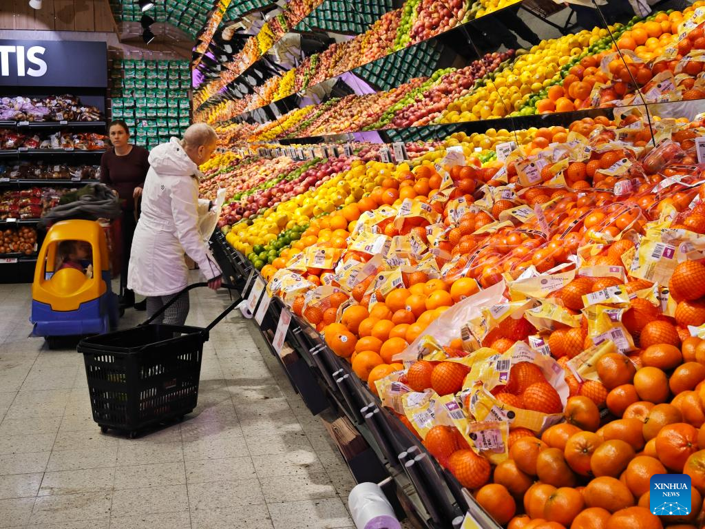 A customer shops at a store in Stockholm, Sweden, on Feb. 6, 2023. Inflation continues to hover at lofty levels in Sweden with food prices registering the largest monthly increases in a year, according to a report released here on Monday. (Photo by Wei Xuechao/Xinhua)
