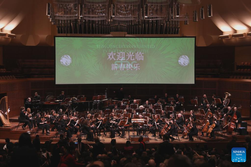 A concert in celebration of the Chinese Lunar New Year is staged by the San Francisco Symphony at Davies Symphony Hall in San Francisco, California, the United States, Feb. 5, 2023. (Photo by Liu Yilin/Xinhua)