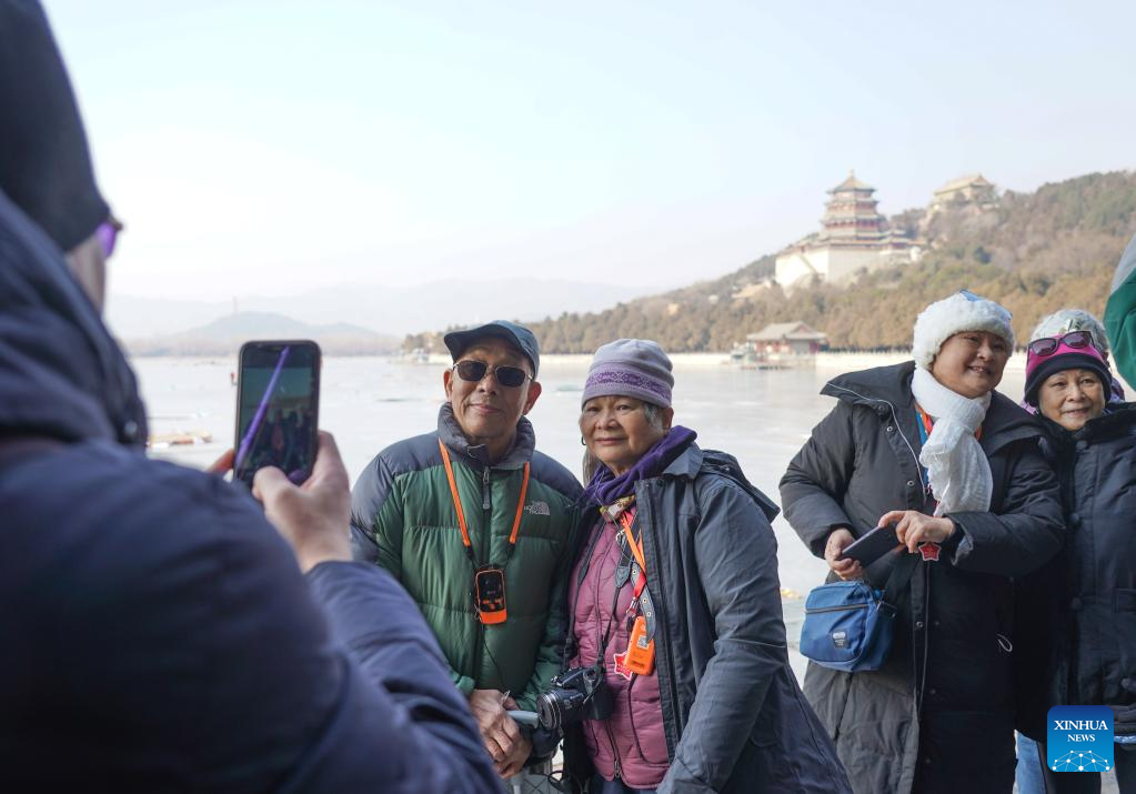 Elderly tourists from Hong Kong visit the Summer Palace in Beijing, capital of China, Feb. 7, 2023. (Xinhua/Chen Zhonghao)