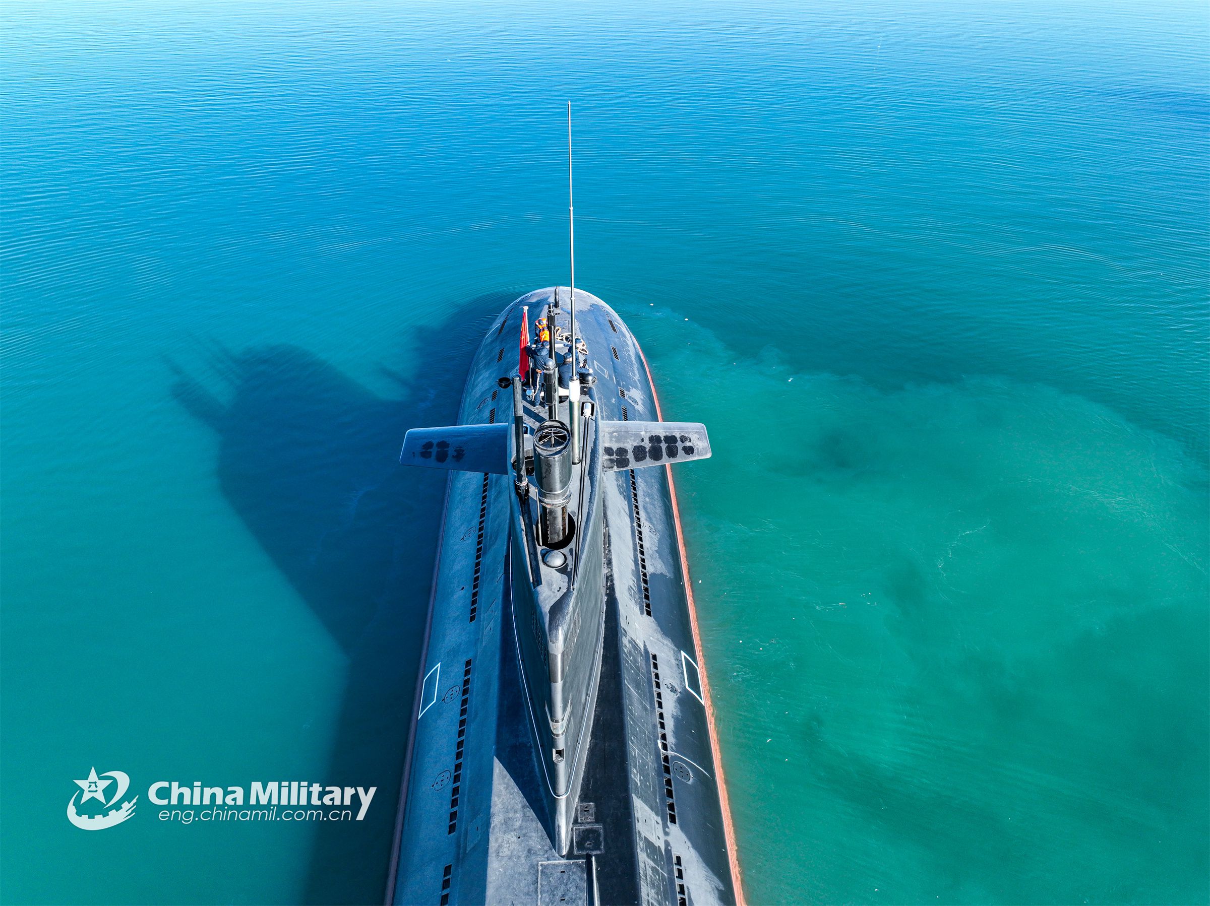 A submarine attached to a naval submarine flotilla under the PLA Northern Theater Command sails smoothly across the sea in a recent real-combat training exercise. (eng.chinamil.com.cn/Photo by Wu Haodong)