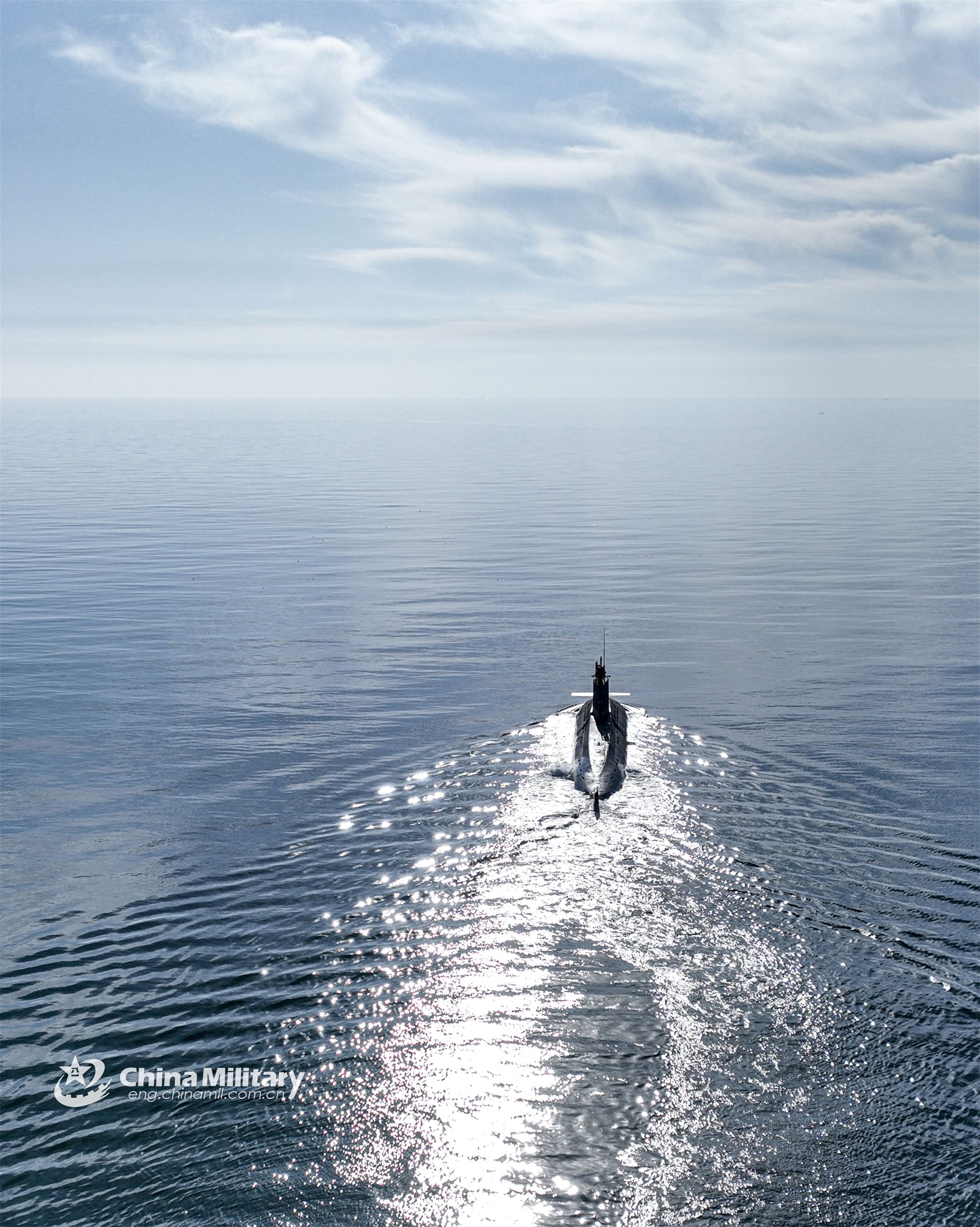 A submarine attached to a naval submarine flotilla under the PLA Northern Theater Command heads out for a real-combat training exercise recently. (eng.chinamil.com.cn/Photo by Wu Haodong)