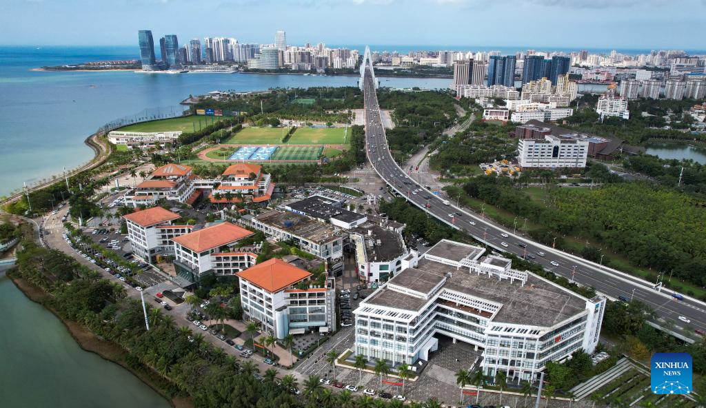 This aerial photo taken on Oct. 17, 2022 shows a view of Yazhou Bay Science and Technology City in Sanya, south China's Hainan Province. In 2022, the key parks of Hainan Free Trade Port completed a total investment in fixed assets of 126.15 billion yuan (about 18.62 billion U.S. dollars), a year-on-year increase of 6.6 percent. The accumulated operating income was 1.82 trillion yuan (about 269.32 billion U.S. dollars), a year-on-year increase of 31.6 percent. (Xinhua/Yang Guanyu)