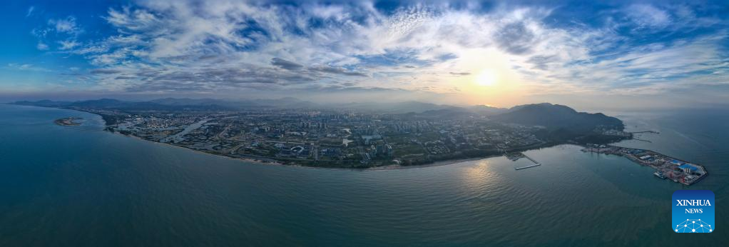 This aerial photo taken on Sept. 25, 2022 shows a view of the Yangpu Economic Development Zone in south China's Hainan Province. In 2022, the key parks of Hainan Free Trade Port completed a total investment in fixed assets of 126.15 billion yuan (about 18.62 billion U.S. dollars), a year-on-year increase of 6.6 percent. The accumulated operating income was 1.82 trillion yuan (about 269.32 billion U.S. dollars), a year-on-year increase of 31.6 percent. (Xinhua/Pu Xiaoxu)