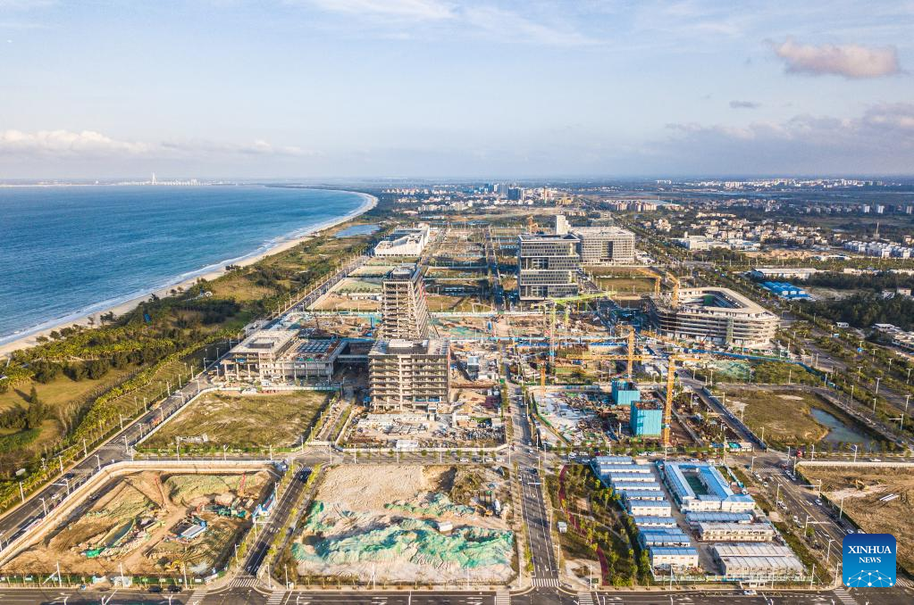 This aerial photo taken on Jan. 23, 2023 shows a commercial space launching site under construction at the Wenchang International Aerospace City in south China's Hainan Province. In 2022, the key parks of Hainan Free Trade Port completed a total investment in fixed assets of 126.15 billion yuan (about 18.62 billion U.S. dollars), a year-on-year increase of 6.6 percent. The accumulated operating income was 1.82 trillion yuan (about 269.32 billion U.S. dollars), a year-on-year increase of 31.6 percent. (Xinhua/Pu Xiaoxu)