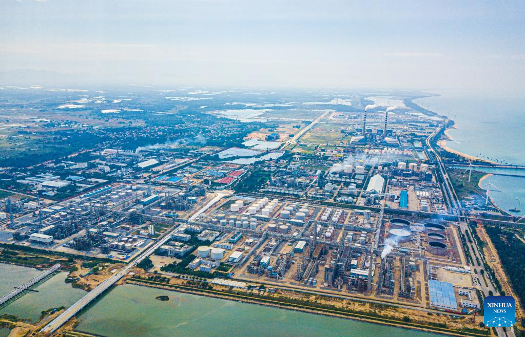 This aerial photo taken on Oct. 23, 2022 shows a view of the Dongfang Lingang Industrial Park in south China's Hainan Province. In 2022, the key parks of Hainan Free Trade Port completed a total investment in fixed assets of 126.15 billion yuan (about 18.62 billion U.S. dollars), a year-on-year increase of 6.6 percent. The accumulated operating income was 1.82 trillion yuan (about 269.32 billion U.S. dollars), a year-on-year increase of 31.6 percent. (Xinhua/Pu Xiaoxu)