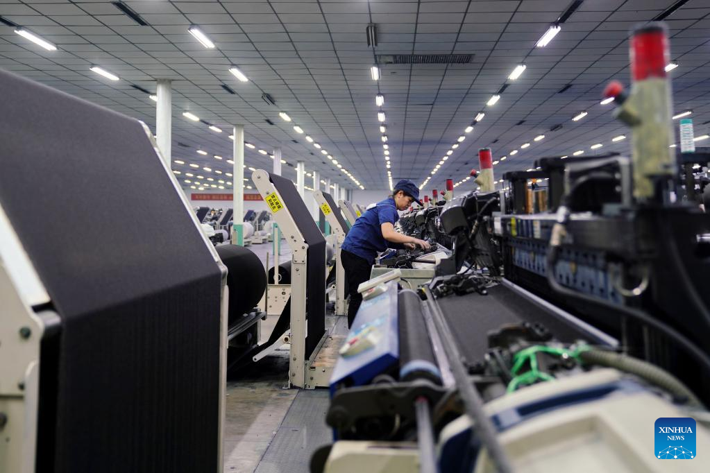 A woman works in the workshop of a textile company in Xingtai, north China's Hebei Province, on Feb. 6, 2023. Hebei Province has focused on improving the innovation ability of small and medium enterprises and adopted a series of measures to support them. (Xinhua/Mu Yu)