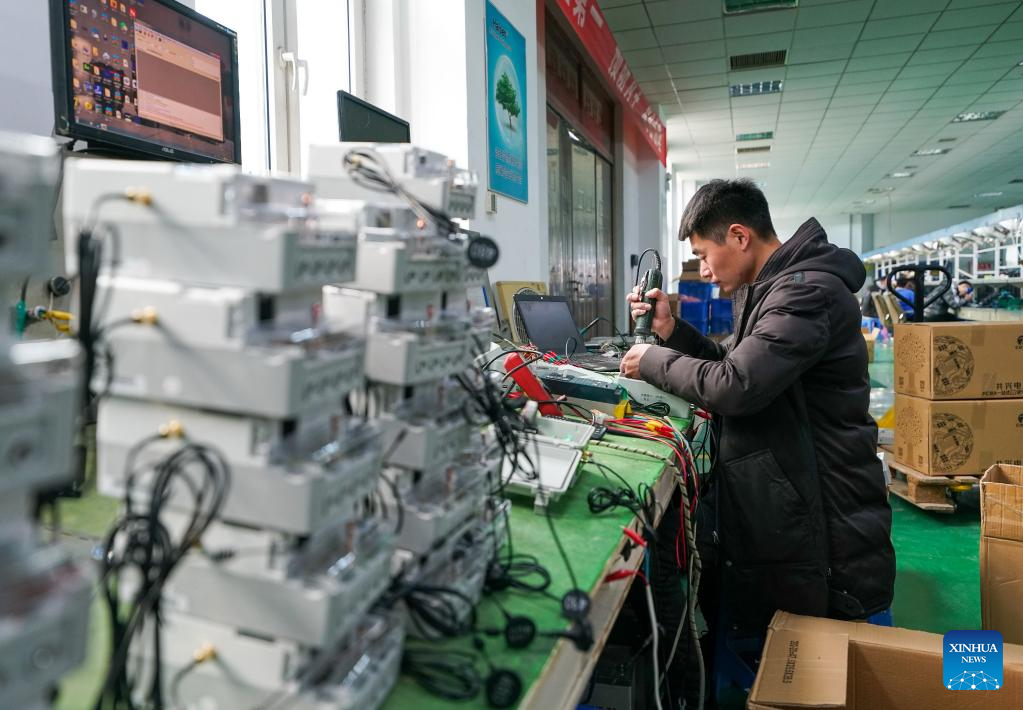 A man works in the workshop of an electronic company in Tangshan, north China's Hebei Province, on Feb. 2, 2023. Hebei Province has focused on improving the innovation ability of small and medium enterprises and adopted a series of measures to support them. (Xinhua/Mu Yu)