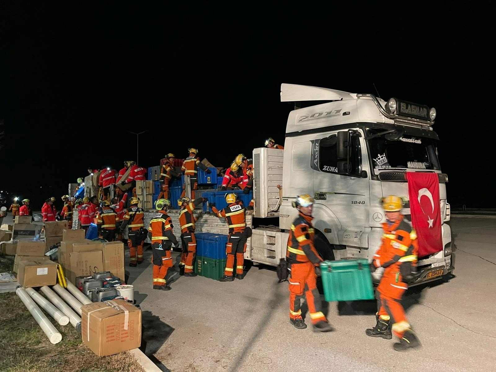 A 59-member search and rescue team sent by China's Hong Kong Special Administrative Region (HKSAR) government reached the disaster area of Hatay, Türkiye at 10:30 pm local time on Feb. 10, 2023. (Photo/People's Daily App)
