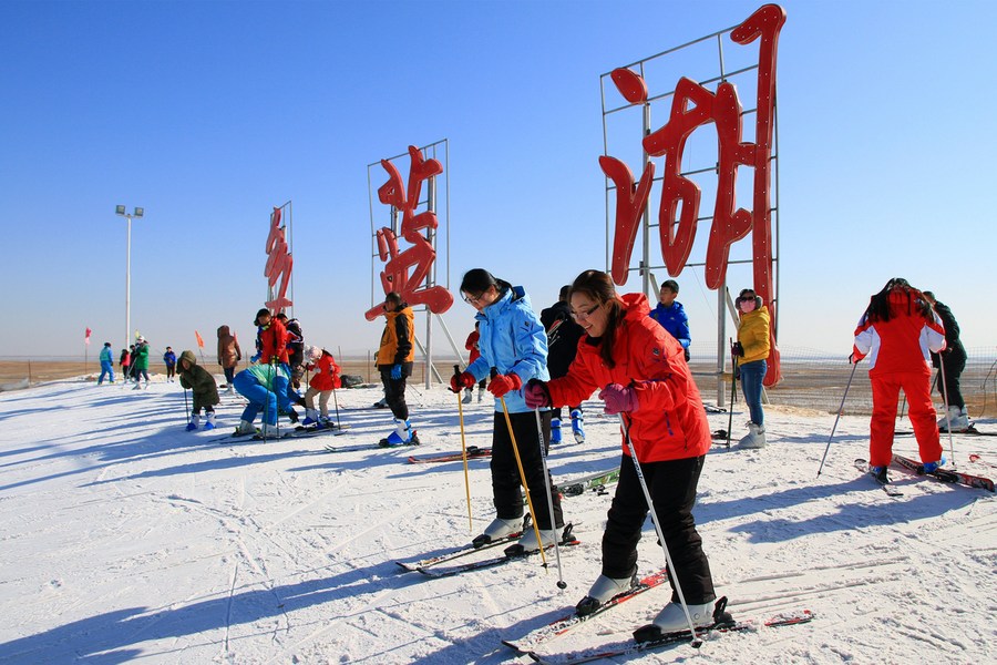 People ski in the Duolanhu skiing field in Linhe District of Bayannur, north China's Inner Mongolia Autonomous Region, Jan. 26, 2023. (Xinhua/Li Yunping)