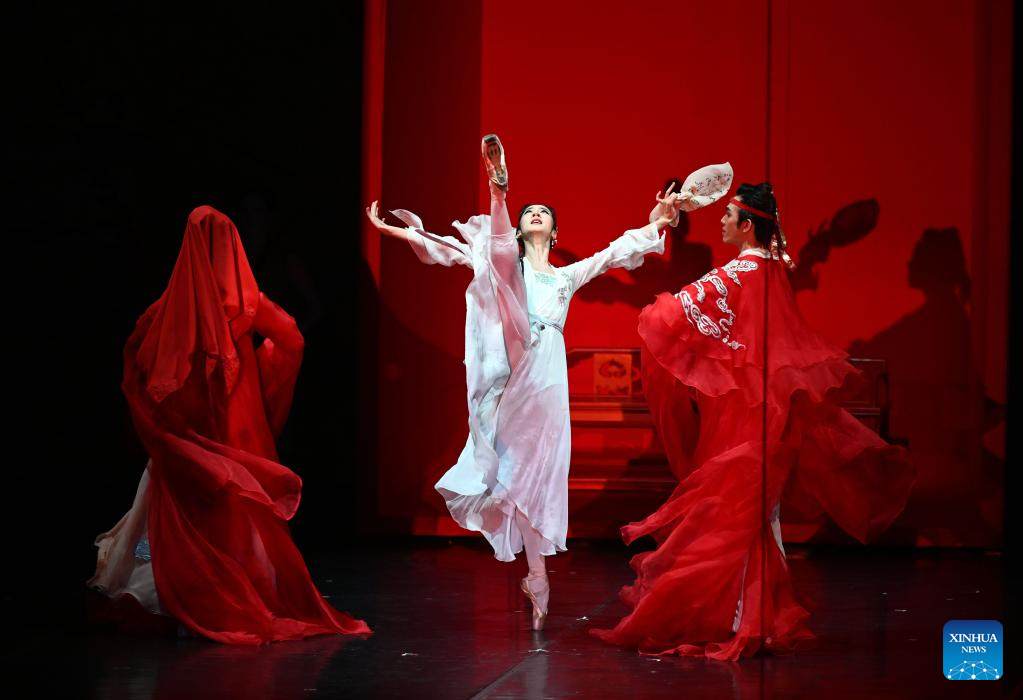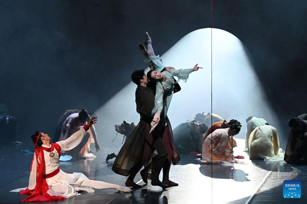 Actors of the National Ballet of China perform during the Ballet "A Dream of Red Mansions" at the Beijing Tianqiao Theater in Beijing, capital of China, Feb. 10, 2023. (Xinhua/Jin Liangkuai)