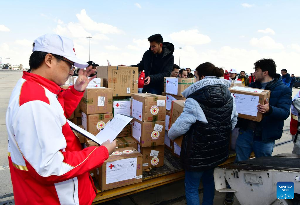 DAMASCUS, Feb. 13 (Xinhua) -- A second batch of relief aid from the Red Cross Society of China (RCSC) arrived in Syria by plane on Monday to provide emergency supplies for people affected by the earthquakes in the country.