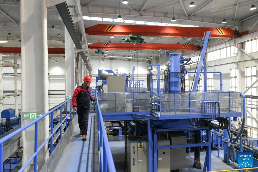 An employee works at a factory of JL MAG Rare Earth (Baotou) Co., Ltd. in Baotou, north China's Inner Mongolia Autonomous Region, Feb. 13, 2023. In recent years, Baotou has taken advantage of its natural resources and industrial foundation to expand the city's rare earth industry chain, with a focus on the rare earth deep processing industry. (Xinhua/Bei He)