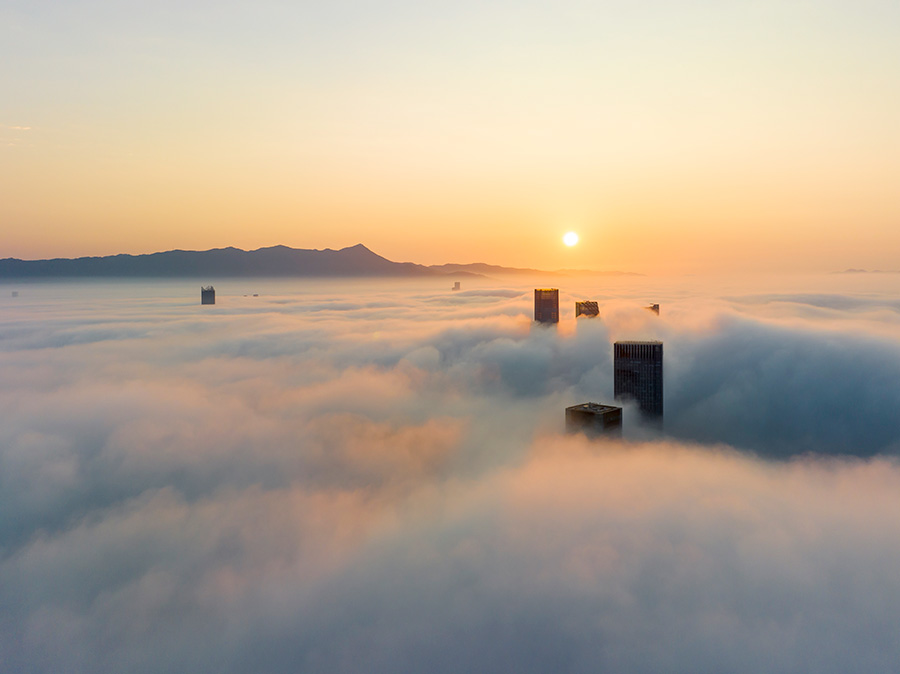 Heavy fog turns SE China’s Fuzhou into “city in sky” (3)