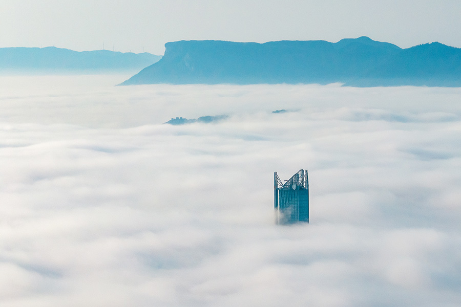 A heavy fog turns Fuzhou in southeast China’s Fujian Province into a wonderland. (Photo/Luo Nanjun)