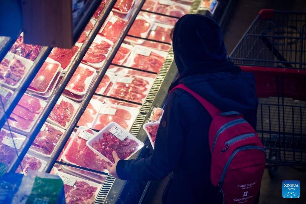 A customer shops at a grocery store in the Brooklyn borough of New York, the United States, on Feb. 14, 2023. The U.S. Labor Department reported Tuesday that U.S. consumer price index, a major gauge of inflation, rose 0.5 percent in January on a monthly basis, the biggest increase in three months and higher than the 0.4 percent expected by economists. The annual rate hit 6.4 percent in January, down slightly from 6.5 percent in December and higher than the market consensus of 6.2 percent. (Photo by Michael Nagle/Xinhua)