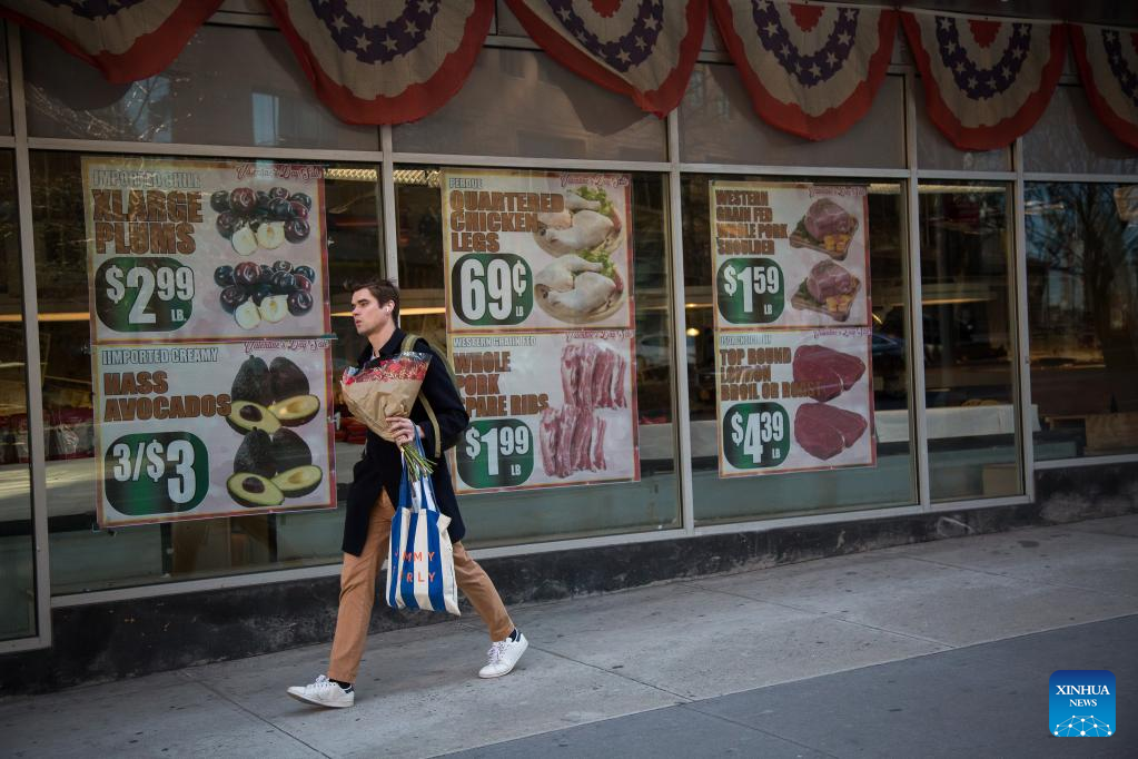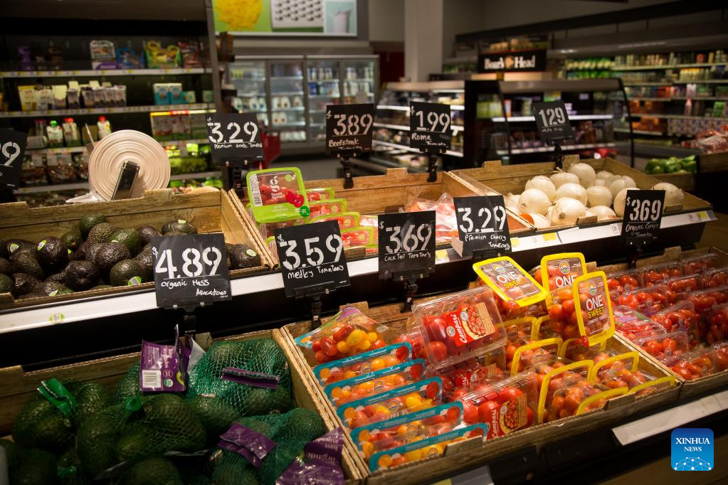 Produce prices are displayed at a grocery store in the Brooklyn borough of New York, the United States, on Feb. 14, 2023. The U.S. Labor Department reported Tuesday that U.S. consumer price index, a major gauge of inflation, rose 0.5 percent in January on a monthly basis, the biggest increase in three months and higher than the 0.4 percent expected by economists. The annual rate hit 6.4 percent in January, down slightly from 6.5 percent in December and higher than the market consensus of 6.2 percent. (Photo by Michael Nagle/Xinhua)