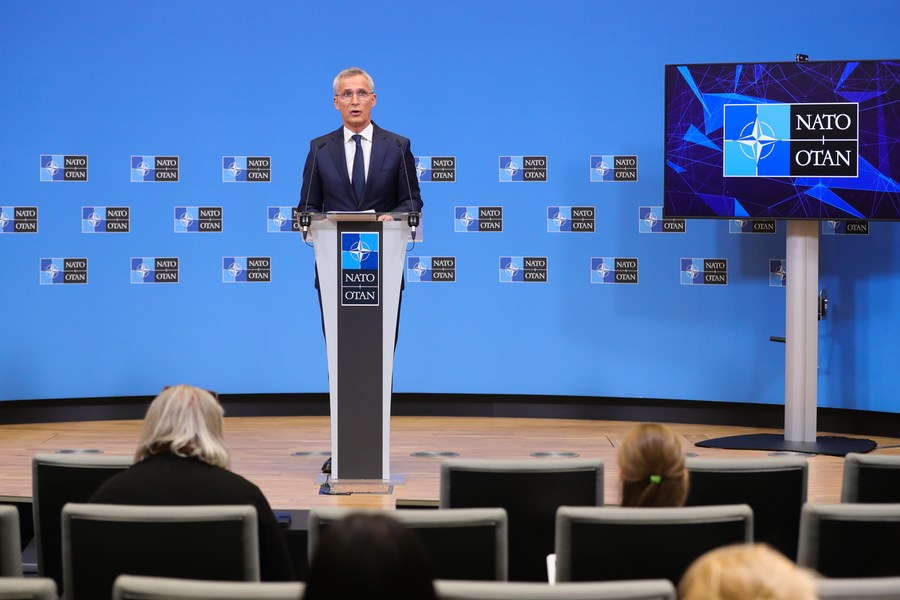 NATO Secretary General Jens Stoltenberg speaks during a press conference after the meeting of NATO Ministers of Defense in NATO headquarters in Brussels, Belgium, June 16, 2022. (Xinhua/Zheng Huansong)