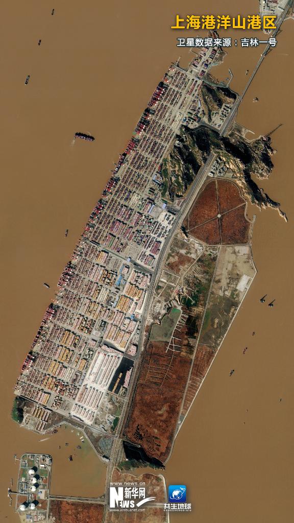 The satellite image shows Yangshan Deep-Water Port, part of the Shanghai Port. (Photo/Xinhua)