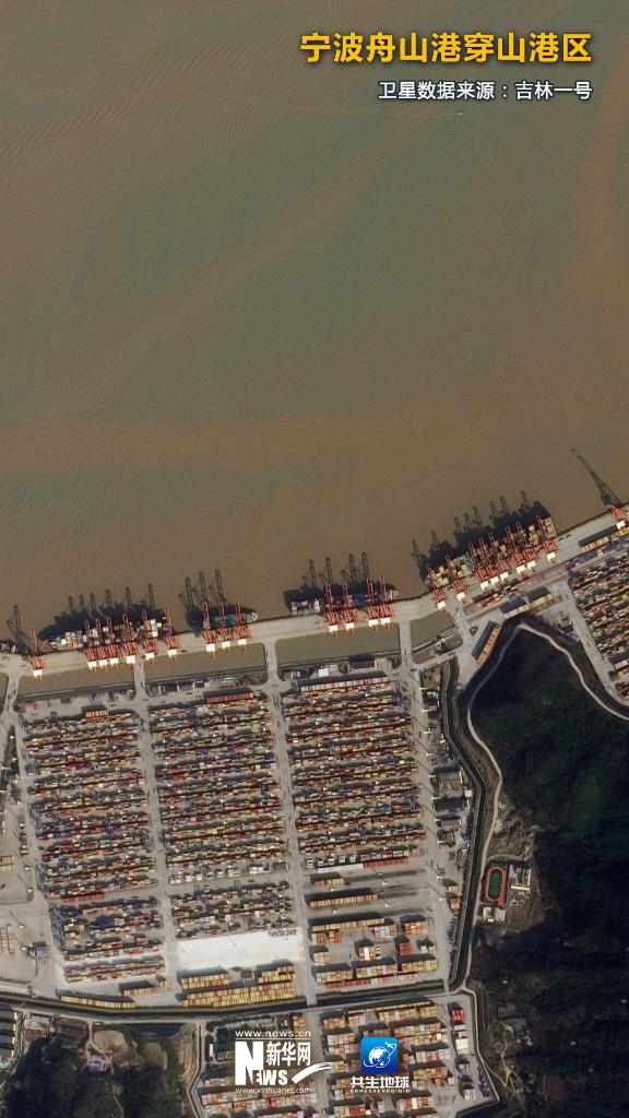 The satellite image shows part of Ningbo-Zhoushan Port. (Photo/Xinhua)