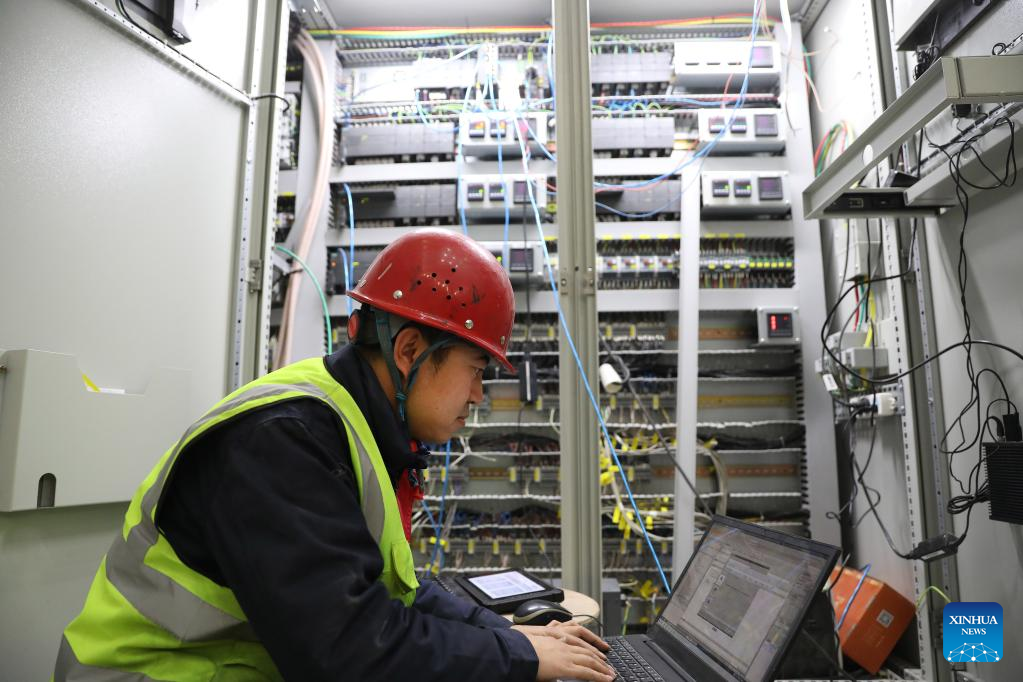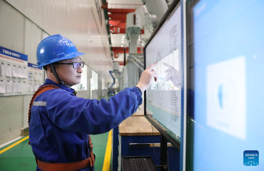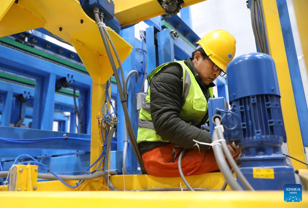 An employee works at the TBEA Shenyang Transformer Group Co., Ltd. in Shenyang, northeast China's Liaoning Province, Feb. 16, 2023. Equipment manufacturing enterprises in Liaoning have been busy with production to meet the orders and to make a good start in the first quarter of 2023. (Xinhua/Yao Jianfeng)