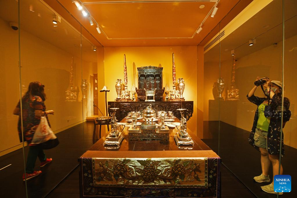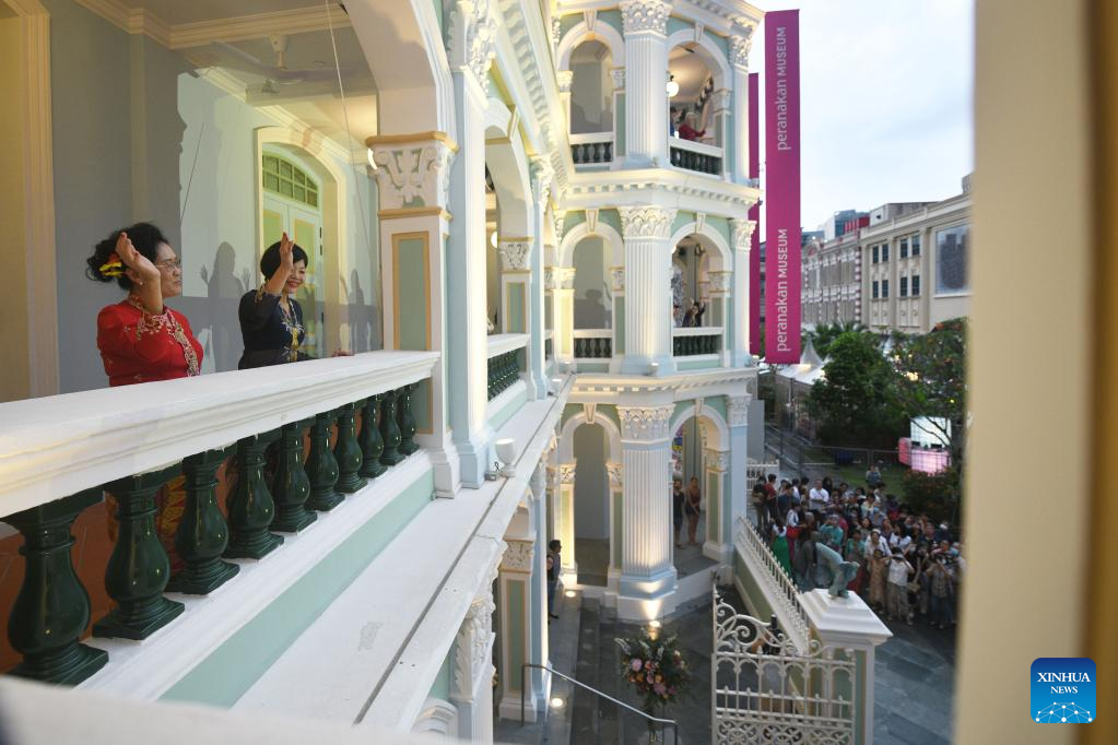 Visitors view the exhibits at the newly re-opened Peranakan Museum, after a four-year renovation, in Singapore on Feb. 17, 2023. (Xinhua/Then Chih Wey)