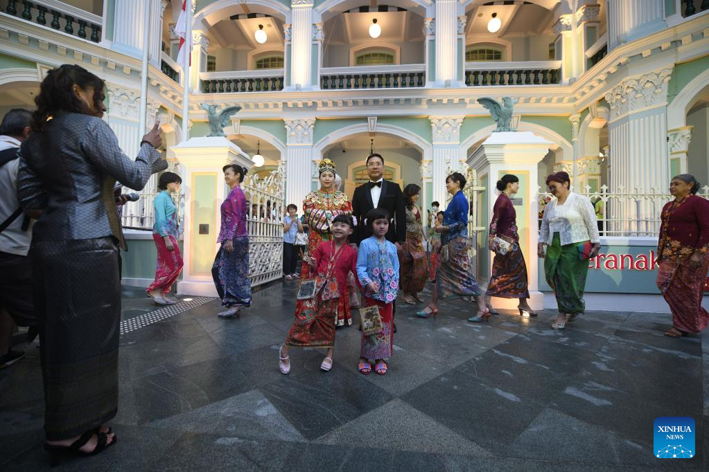 Models wearing traditional sarong kebaya on the first day of the newly re-opened Peranakan Museum, after a four-year renovation, in Singapore on Feb. 17, 2023. (Xinhua/Then Chih Wey)