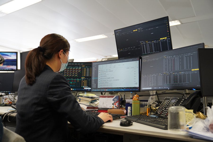 A trader works at the Bank of Shanghai in Lujiazui area of Shanghai, east China, June 1, 2022. (Xinhua/Yang Youzong)