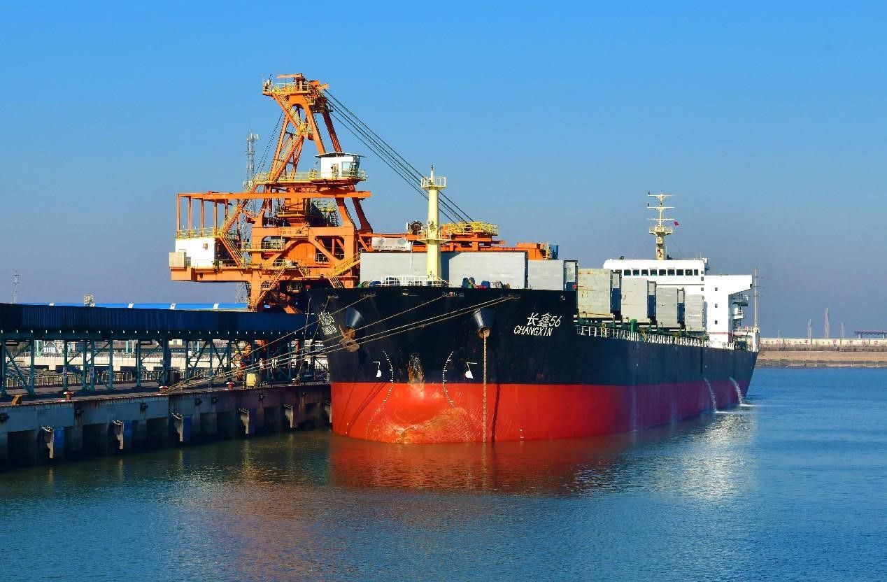 A coal vessel is being loaded at a coal terminal in the Port of Huanghua, Cangzhou, north China's Hebei province. (People's Daily Online/Yuan Liwei)