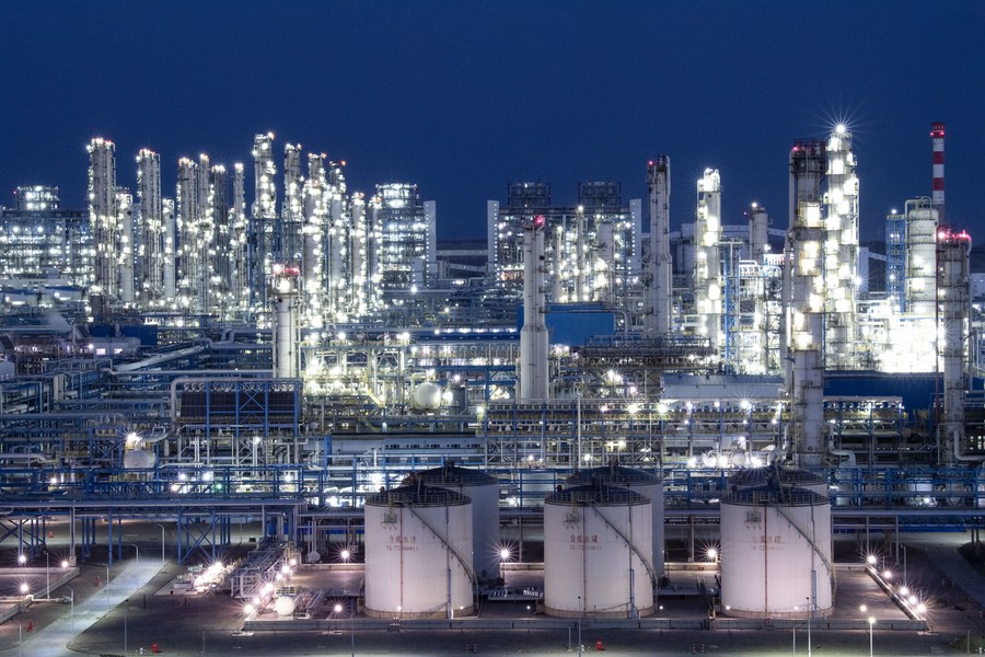 This photo taken on June 22, 2022 shows a night view of the coal-to-liquid plant of Ningxia Coal Industry Group Co., Ltd. under China Energy in Ningdong Energy Chemical Industry Base, northwest China's Ningxia Hui Autonomous Region. (Xinhua/Feng Kaihua)
