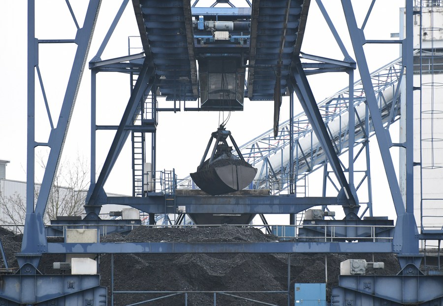 Loading equipment operates at a coal yard of a thermal power plant in Berlin, Germany, Jan. 9, 2023. (Xinhua/Ren Pengfei)