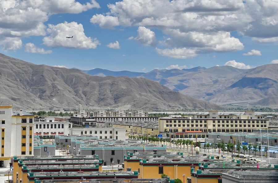 This photo taken on July 19, 2022 shows a view of the relocation site in Singpori, southwest China's Tibet Autonomous Region. (Xinhua/Zhang Rufeng)