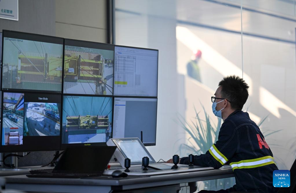 Equipped with more than 100 thousand types of sensors, the terminal is upgraded from a smart container terminal with zero carbon emissions. (Xinhua/Li Ran)