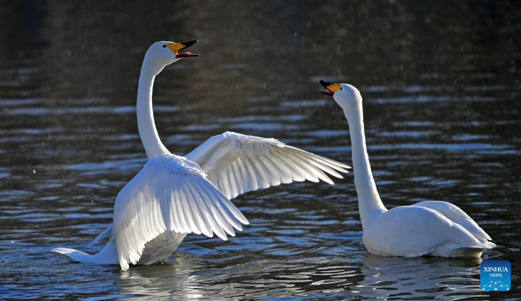 Swans are seen in Hongcun Village, Bajiazi Township, Beipiao of northeast China's Liaoning Province, Feb. 21, 2023.