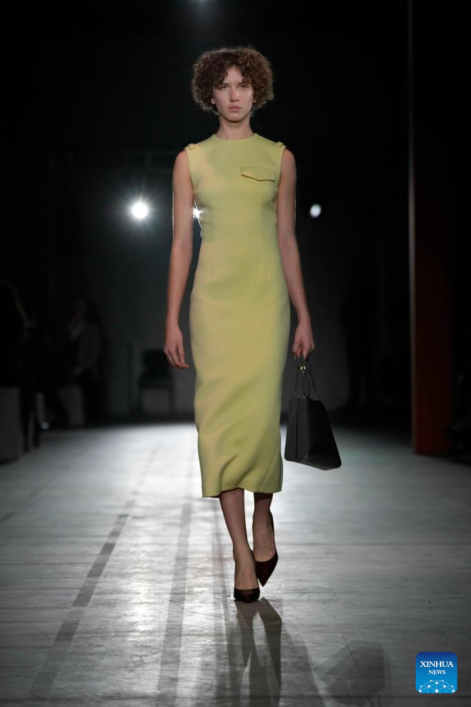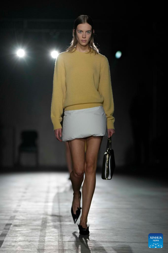 A model presents a creation from Prada women's Fall/Winter 2023/2024 collection during Milan Fashion Week in Milan, Italy, on Feb. 23, 2023. (Str/Xinhua)