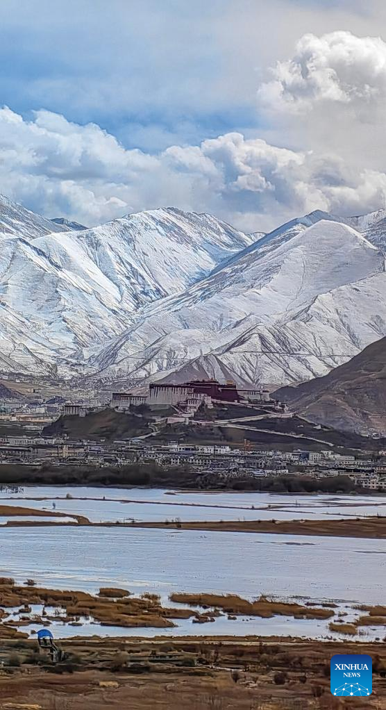 This photo taken on Feb. 24, 2023 show a view after a snowfall in Lhasa, southwest China's Tibet Autonomous Region. (Xinhua/Sun Fei)