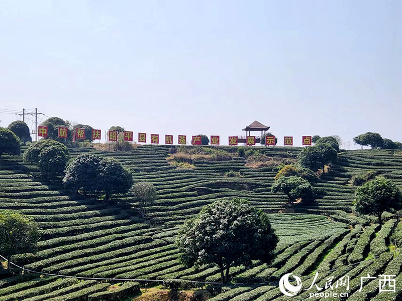Photo shows a demonstration zone for organic tea built with assistance from China National Aviation Holding Company, a centrally administered state-owned enterprise, in Zhaoping county, south China’s Guangxi Zhuang Autonomous Region. (People’s Daily Online/Huang Zijing)