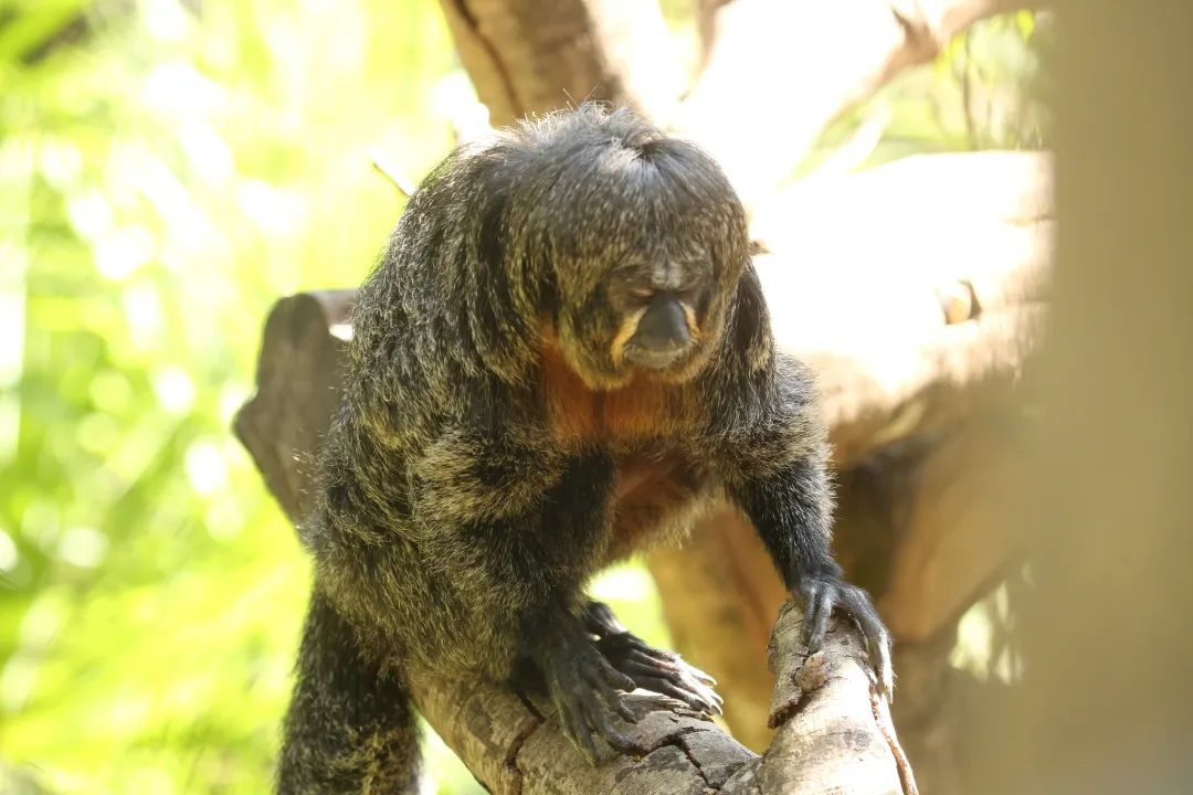 In fact, there are three white-faced sakis in Hongshan Forest Zoo, and they are a family of three, according to the zoo.