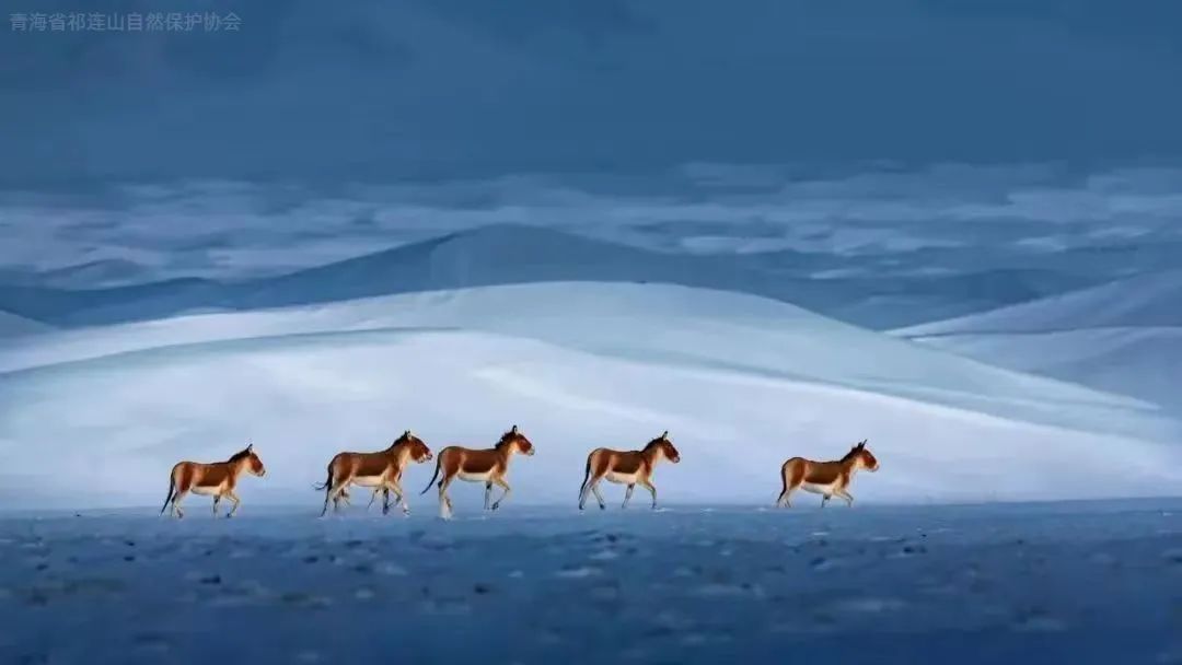 An image of Tibetan wild donkeys taken by photographer Deng Liangming. (Photo courtesy of the Qinghai Qilian Mountains Nature Conservation Association)