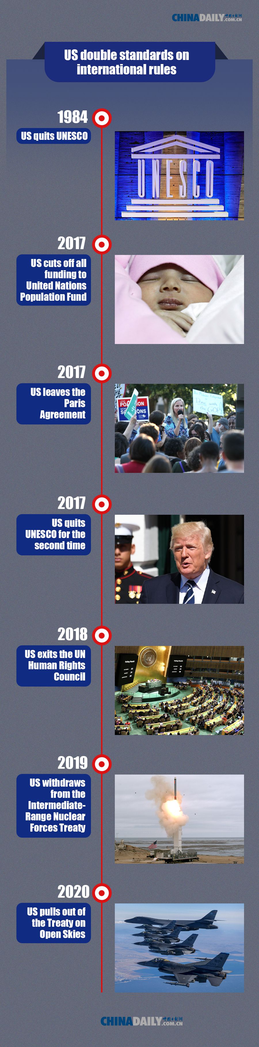 The US has taken a selective approach to international law and rules, utilizing or discarding them as it sees fit, and has sought to impose rules that serve its own interests. This timeline shows how the US has brought harm to the international community in doing so.