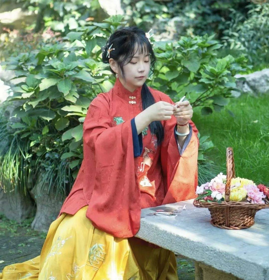Wang Yunyu, wearing hanfu (traditional Chinese costume), makes a tongcao flower. (Photo/CCTV News)