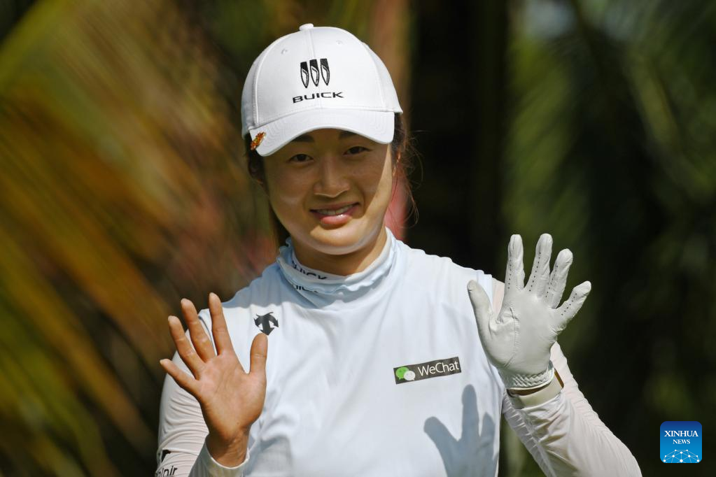 Liu Yu of China waves her hands on the first day of the HSBC Women's World Championship held at Singapore's Sentosa Golf Club on March 2, 2023. (Photo by Then Chih Wey/Xinhua)