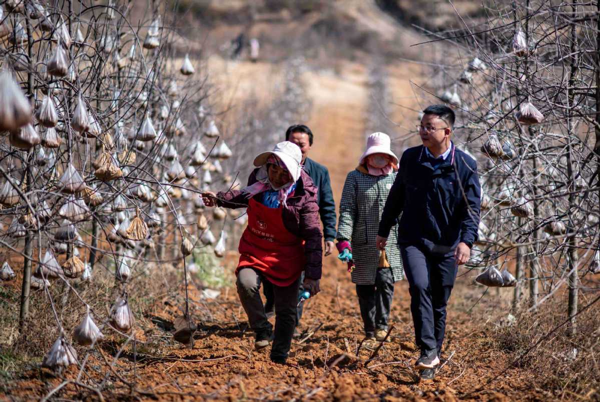 Yuan Haibo talks with farmers in Qujing. [Photo/Xinhua]