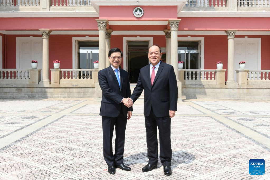 MACAO, March 2 (Xinhua) -- Chief Executive of the Macao Special Administrative Region (SAR) Ho Iat Seng and Chief Executive of the HKSAR John Lee met Thursday in Macao, pledging to jointly promote coordinated development of the two SARs and integrate into overall national development.